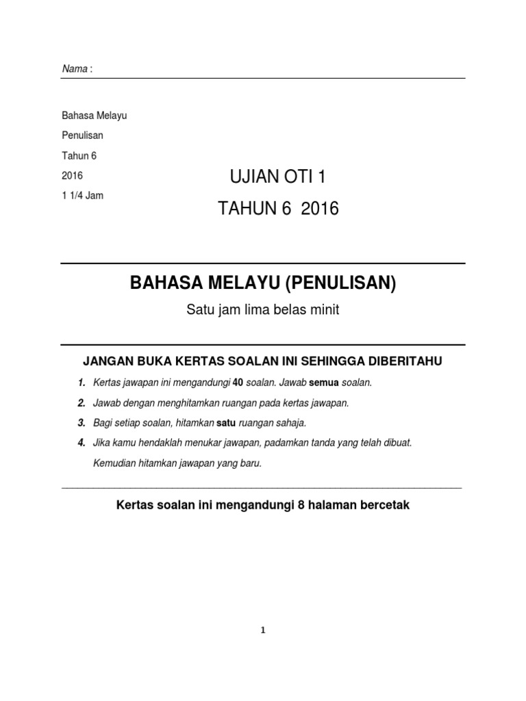 Ujian Bertulis Bahasa Melayu Tahun 6 Pdf