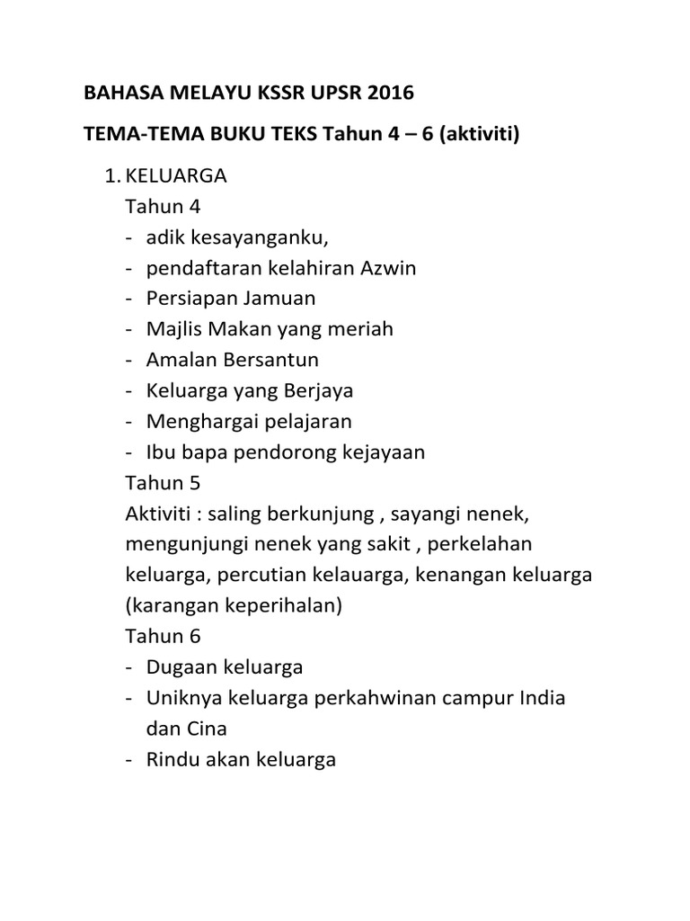 Bahasa Melayu Kssr 4 6 Upsr 2016 Tema Dan Aktiviti Pdf